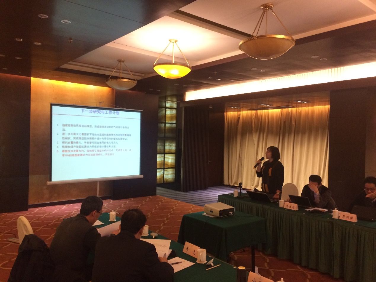 与会专家听取了项目和课题的工作汇报,就相关问题进行了质询和讨论,专家们肯定了本年度的项目执行情况,认为项目在进展到第四年度,在基于燃料燃烧微型发动机的基础理论、关键技术和系统集成方面取得预期进展,希望项目组进一步聚焦研究力量,对照项目总体目标任务,围绕关键科学问题继续深入研究,并进行系统归纳总结,加强系统集成示范研究,进一步提高样机性能。